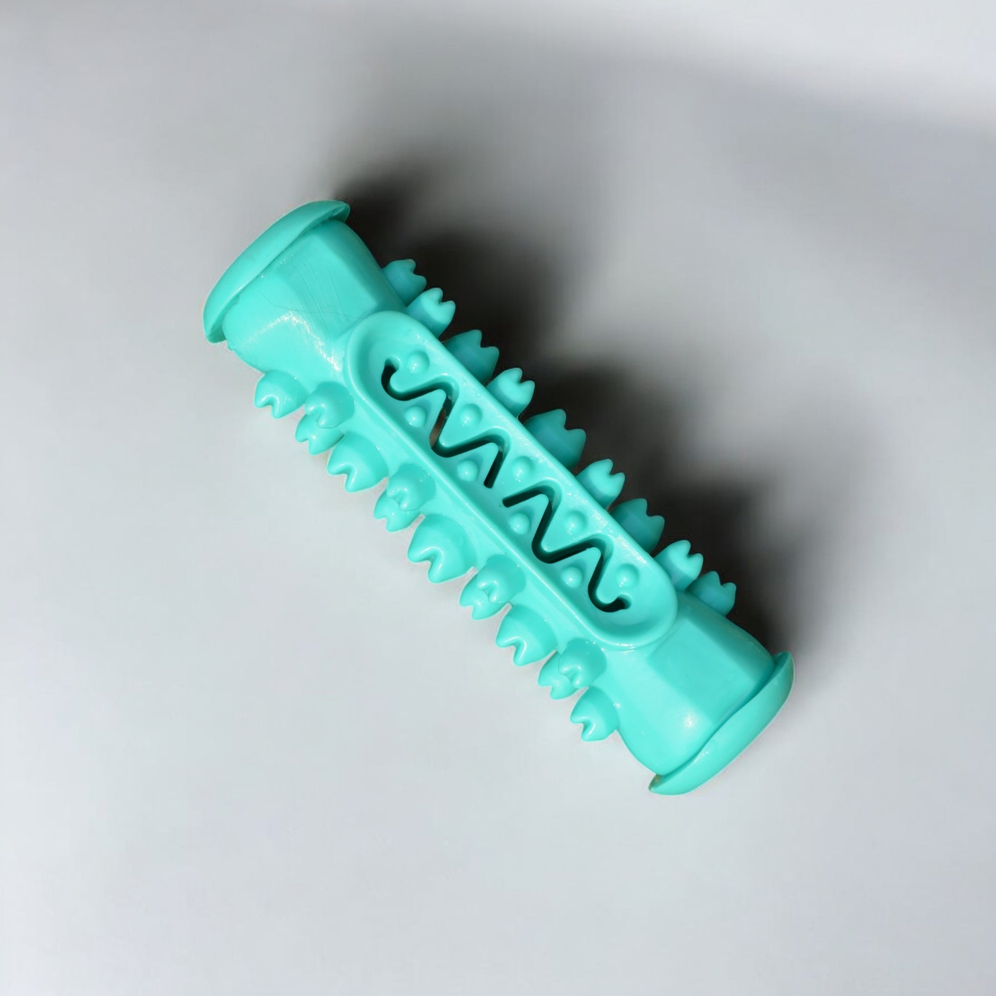 Nuestro cepillo dental fue diseñado para que tu perro limpie sus dientes mientras juega, sin estrés, sin cepillos incómodos ni visitas innecesarias al veterinario.