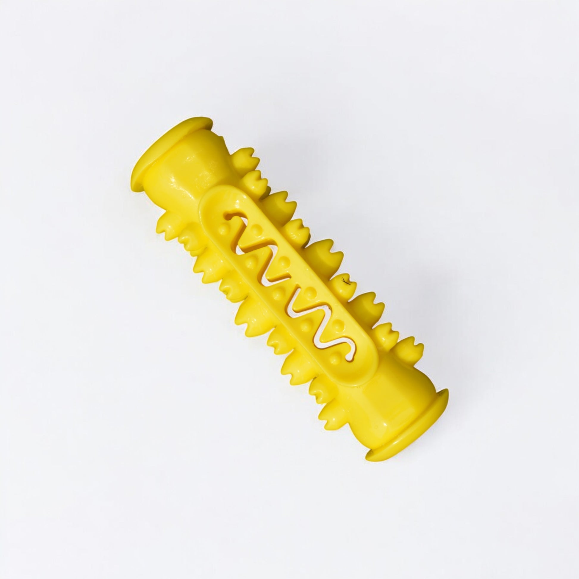 Su forma está diseñada para alcanzar los molares y limpiar los rincones difíciles mientras el perro juega.